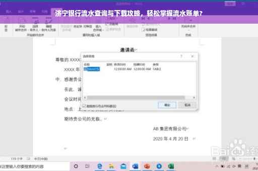 全面,涵盖了济宁银行流水的下载方法、注意事项、常见问题及解决方案等,旨在为广大济宁银行客户提供便利,在操作过程中,如有任何疑问或需要帮助,请及时联系济宁银行客服。