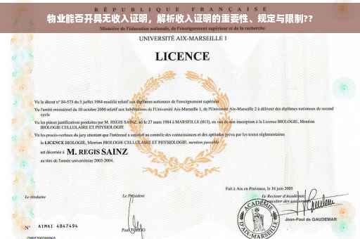 在日常生活和工作中,收入证明是一个重要的文件,通常用于办理贷款、信用卡、租房等场合,有时候我们可能会遇到无法提供正常收入证明的情况,这时一些人可能会想到通过物业部门开具所谓的“无收入证明”来应对,物业到底能否为我们出具这样的证明呢?本文将围绕这一问题展开讨论,并介绍收入证明的重要性及相关规定。