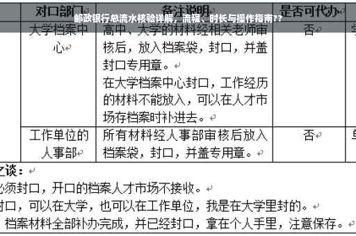 随着金融行业的快速发展,邮政银行作为国有大型商业银行,为广大客户提供全方位的金融服务,总流水核验是确保金融交易透明度和安全性的一项重要环节,本文将详细介绍邮政银行总流水核验的相关知识,包括核验的重要性、操作流程及注意事项等。