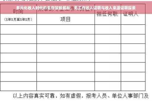 随着社会的快速发展和变革,越来越多的人开始投身于自由职业、创业或者选择成为全职投资者等职业道路,这些职业往往不再依赖于传统的固定工作收入来源,本文将探讨无固定工作的收入来源证明的重要性,以及如何在这个多元化收入时代中生存与发展。