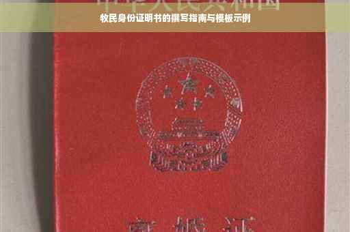 摘要:,,本文介绍了牧民身份证明书的撰写方式。该证明书是为了确认牧民的身份信息而制作的,内容包括牧民的姓名、性别、出生日期、民族、住址等基本信息。撰写时需注意证明书的格式和规范,确保信息真实、准确、完整。本文旨在为需要撰写牧民身份证明书的人提供参考,帮助了解如何正确、简洁地表达证明书的主要内容。