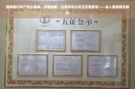 摘要:本文将介绍银行账户流水查询的步骤、注意事项及常见问题解答。查询账户流水需遵循本人查询的规定,以确保账户安全。本文将帮助您了解如何正确查询账户流水,包括准备相关证件、选择查询途径等步骤,同时提醒您在查询过程中注意保护个人隐私和账户安全。阅读本文,您将轻松掌握银行账户流水查询的要点。