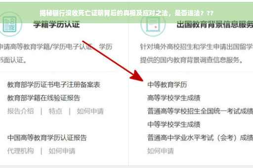 摘要:银行没收死亡证明书引发关注,背后涉及法律和程序问题。需了解银行为何拒绝接收,并探讨其是否违法。应寻求合法途径解决争议,如咨询律师或相关部门。在解决过程中,保持冷静,避免情绪化行为。最终目标是确保合法权利得到保障,并明确应对之道。