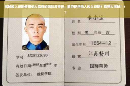 随着现代社会的发展,收入证明在我们的日常生活和工作中扮演着越来越重要的角色,无论是申请贷款、办理信用卡,还是租房、入职,都可能涉及到收入证明的问题,当某些特殊情况下,我们能否使用别人的收入证明呢?本文将深入探讨这一问题背后的风险与责任。