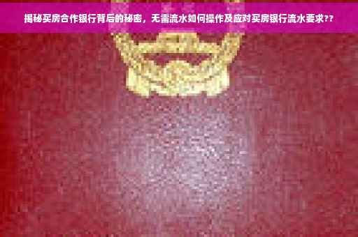 摘要:在购房过程中,与银行合作时,流水并非必要,背后隐藏着一些秘密。本文将揭示买房合作银行背后的原因,解释为何不需要提供流水,以及在需要银行流水时如何应对。为读者提供购房过程中的重要参考和建议。