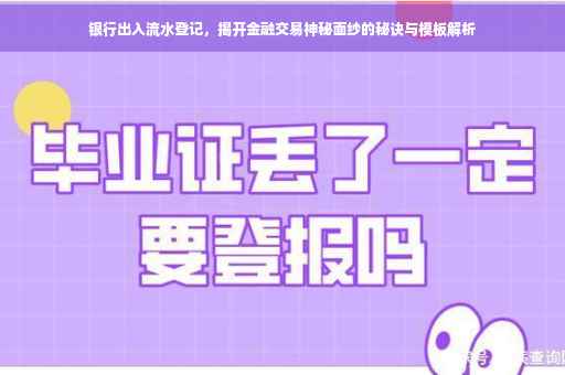 随着金融行业的迅速发展,银行业务已经深入到我们生活的方方面面,作为银行业务的核心环节,银行出入流水登记不仅关乎个人和企业的资金安全,更是维护金融市场稳定、社会秩序井然的重要一环,本文将全方位解读银行出入流水登记的相关知识,助您更好地了解这一金融交易过程。