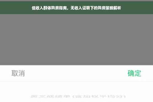 摘要:对于没有收入证明的低收入群体来说,购房是一项挑战。本文将全面解析这一群体的购房策略,探讨在没有收入证明的情况下如何购房。我们将探讨可能的解决方案,包括寻求担保人或共同借款人、提供其他财务证明、选择合适的贷款产品等。本文旨在为低收入群体提供购房的实用建议和指导。