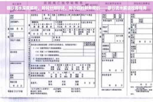 摘要:本视频深入解析银行流水,教你如何分辨好坏。通过银行流水的分析,了解个人或企业的财务状况,为财务规划提供明确方向。视频内容涵盖银行流水的重要性、如何识别优质流水、避免陷阱等方面,帮助观众更好地管理个人财务,实现财务自由。观看视频,轻松掌握分辨银行流水好坏的技巧。