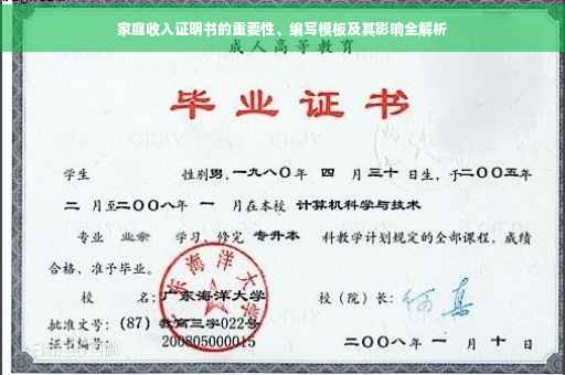 在当今社会,随着经济的发展和社会的进步,越来越多的人开始重视个人及家庭的财务管理,在这个大背景下,家庭收入证明书作为一种重要的财务证明文件,其意义愈发凸显,本文将详细介绍家庭收入证明书的作用、内容及其对个人和家庭的影响。