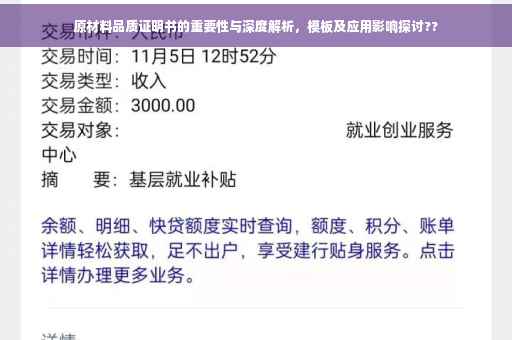 原材料品质证明书在保障产品质量、企业声誉和消费者利益方面发挥着重要作用,企业应高度重视原材料品质证明书的管理,建立严格的检验和控制体系,确保原材料品质证明书的真实性和有效性,政府相关部门和社会各界也应加强监管和宣传,共同推动行业的健康发展。
