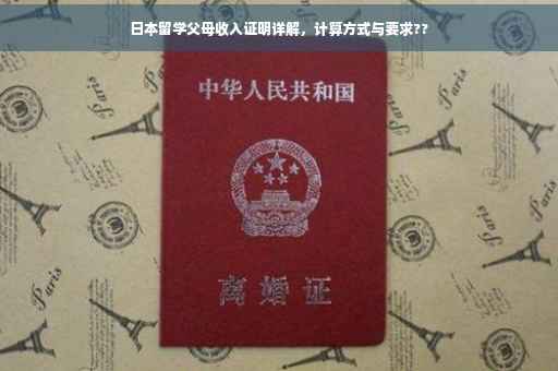 摘要:关于日本留学父母收入证明详解,该证明是留学签证申请的重要材料之一。父母收入证明的计算方式包括将父母两人的收入相加,以体现申请人的经济能力和留学期间的资金保障。具体计算方式需结合父母的实际收入情况,包括工资、奖金、津贴等。正确提供父母收入证明对于顺利获得日本留学签证至关重要。