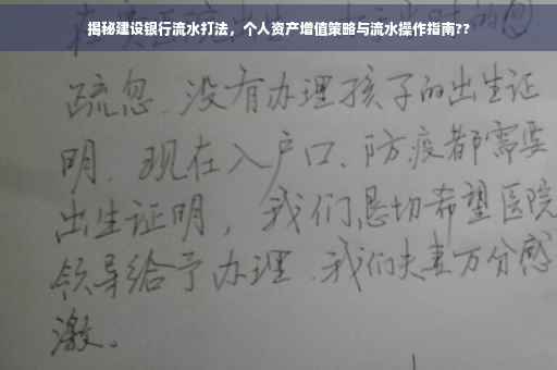 摘要:,,本文将揭秘建设银行流水的有效打法,为个人资产提升提供策略。通过掌握正确的流水操作技巧,如合理规划资金使用、利用银行金融产品等,个人资产将得到最大化增长。本文将详细解析建设银行流水的具体打法,帮助读者了解如何通过正确操作提升个人资产。