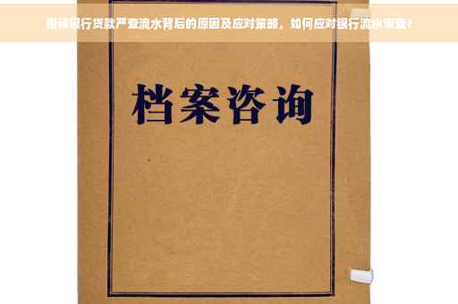 近年来,随着金融市场的快速发展,越来越多的人选择通过银行进行贷款来解决生活中的各种问题,随着金融市场的风险逐渐加大,银行对于贷款的审核也变得越来越严格,流水审查作为贷款审核的重要环节之一,更是备受关注,本文将探讨银行贷款严查流水背后的原因以及应对之策。