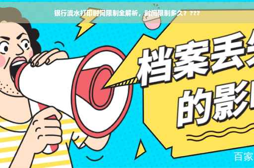 随着现代金融活动的日益频繁,银行流水在我们的生活中扮演着不可或缺的角色,无论是办理贷款、信用卡,还是签证申请、求职等场合,银行流水证明都是一项重要的资料,在打印银行流水时,我们经常会遇到时间限制的问题,本文将详细介绍银行打印流水的时间限制、相关注意事项以及应对策略。