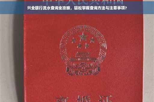 本文详细介绍了兴业银行流水的查询方法,包括网上银行查询、手机银行查询及柜台查询,希望广大用户能轻松掌握查询方法,更好地管理个人财务,在查询过程中,请注意保护个人信息,遵循注意事项,以便顺利查询,如遇任何问题,请及时联系兴业银行客服咨询,祝愿大家生活愉快,财务自由!