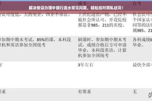摘要:办理签证时银行流水混乱是常见问题,但不必过于担心。本文为你提供解决方案,包括整理银行流水账单、突出稳定收入、解释异常情况等。遇到问题时,保持冷静,正确理解签证官的需求,提供清晰、准确的财务证明,有助于顺利办理签证。
