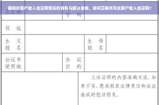 随着社会的不断发展,贫困问题一直是国家和社会关注的焦点之一,而贫困户收入低证明作为政府和社会力量扶贫的一种重要手段,更是引起了广泛关注,贫困户收入低证明背后隐藏着哪些真相?我们又该如何解决这一问题?本文将就此展开讨论。