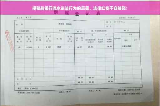 揭秘刷银行流水违法行为的后果。刷银行流水是一种违法行为,会导致严重的财务和法律后果。包括信用记录受损、账户冻结、面临欺诈指控等。个人和企业应遵守法律法规,诚信经营,远离非法行为。切勿贪图短期利益,以免陷入法律困境。