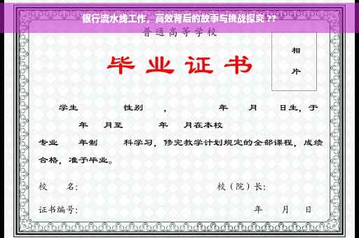 随着科技的飞速发展和市场竞争的加剧,银行业正经历前所未有的变革,为了提高工作效率并降低成本,流水线工作方式被众多银行引入,从而诞生了流水线工作银行,这一新模式已成为金融行业的新常态,本文将详细探讨流水线工作银行的运作机制、优势及挑战,以期为读者提供全面、客观的认识。