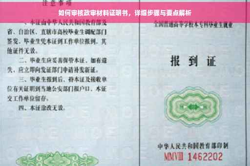 摘要:审核政审材料证明书需要仔细审查证明书的真实性、完整性和准确性。首先确认证明文件的合法性,包括签发机构的权威性和签署人的资格。接着核实文件内容,如个人信息、工作经历、政治表现等是否准确无误。还需注意审查过程中是否有涂改、添加等痕迹,以及逻辑是否通顺。审核完毕后,对政审材料证明书进行全面评估,确保其真实有效并符合相关要求。