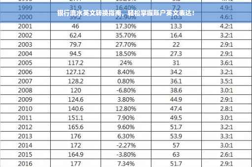 随着全球化的推进,跨境交易、海外投资和国际业务日益频繁,在这个过程中,银行流水作为财务交易的关键证明文件,经常需要翻译成英文,本文将为你详细介绍如何将银行流水转换为英文,帮助你在国际交流中更加便捷地沟通。