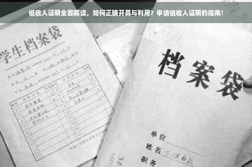 摘要:本文将全面解读低收入证明,介绍如何正确开具与利用。文章指出,低收入证明是用于证明个人或家庭收入状况的重要文件,可以在政府部门、社会组织、企事业单位等开具。本文将指导读者如何根据自身情况选择合适的开具机构,并正确填写相关信息。文章还将介绍低收入证明的作用和适用范围,帮助读者更好地利用这一证明来享受相关政策和福利待遇。