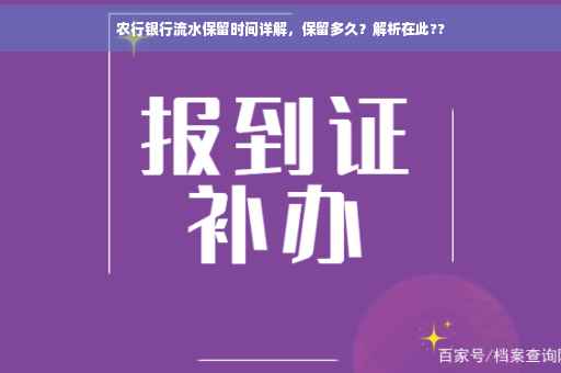 摘要:农行银行流水保留时间解析,关于农行银行流水的保留时间问题。根据相关规定和实际操作经验,农行银行流水通常会保留较长时间,以便客户查询和作为凭证使用。具体保留时间可能因业务需要、账户类型等因素而有所不同,建议客户及时咨询农行客服或前往柜台了解详细保留时间。