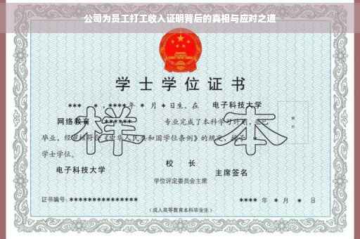 摘要:,,公司为员工提供的打工收入证明是员工薪资和职位的重要证明,但背后也存在一些真相需要揭示。真相包括可能存在的不实证明、收入虚高等问题。为了应对这些问题,公司应该制定明确的政策,确保收入证明的真实性和准确性。在撰写收入证明时,应明确说明员工的职位、工作内容、薪资及福利待遇等细节。员工也应提高警惕,核实证明内容的真实性,确保自身权益不受损害。