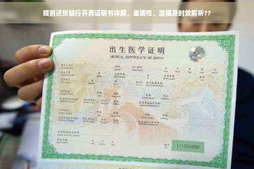 随着金融市场的发展和金融产品的不断创新,越来越多的人选择贷款购房、购车等消费,在某些情况下,我们可能会面临提前还贷的情况,这时,银行开具的提前还贷证明书就显得尤为重要,本文将详细介绍提前还贷银行开具证明书的相关内容,帮助大家了解其作用、办理流程以及注意事项。