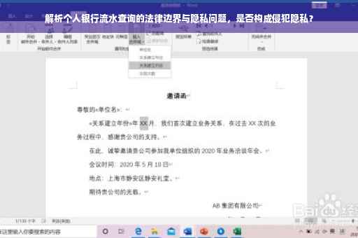 随着金融科技的飞速发展和个人金融业务的普及,越来越多的人开始关注个人银行流水的重要性,查询个人银行流水是否犯法呢?这个问题涉及到个人隐私、信息安全以及法律法规等多个方面,本文将就此问题展开深度解析,帮助大家更好地了解相关法律法规,保护自己的合法权益。