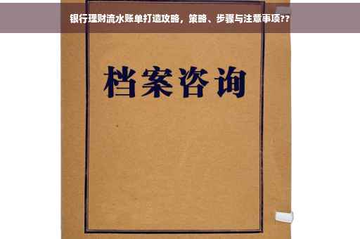 摘要:银行理财打流水账单需要策略性规划和注意事项。了解银行流水账单的重要性,它是评估个人财务状况的重要依据。制定策略,选择合适的理财产品,明确投资期限和收益目标。步骤包括登录网银或前往银行柜台打印账单,确保信息准确无误。注意事项包括保护个人隐私,避免泄露账户信息,以及定期检查和核对账单。通过遵循这些策略、步骤和注意事项,可以更有效地管理银行理财流水账单。