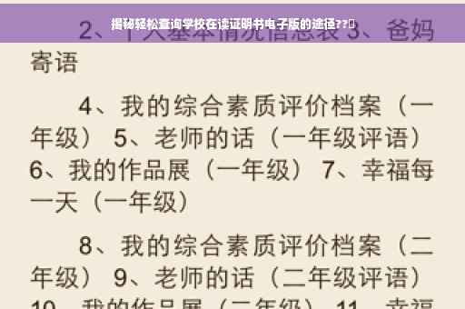 摘要:想要轻松查询学校在读证明书,不必再奔波于校园之间。本文为你揭秘高效途径,轻松获取学校在读证明书电子版。只需登录学校官方网站或相关教育服务平台,进入学籍信息查询系统,输入个人信息,即可快速获取个人在校期间的证明文件。这一便捷途径省去了繁琐流程,让你随时随地查看学校在读证明书电子版。