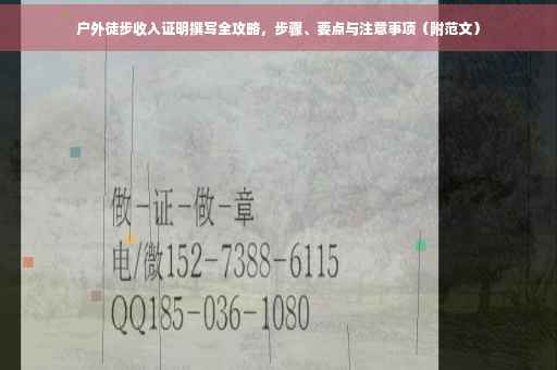随着户外徒步运动的兴起,越来越多的人投身于户外徒步相关职业或兼职工作,在这种情况下,一份详尽且规范的户外徒步收入证明变得尤为重要,本文将为您详细介绍如何撰写户外徒步收入证明,包括其概述、撰写步骤、要点以及注意事项,以帮助您轻松完成这一任务。