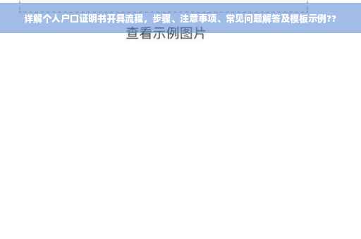 摘要:本文将详细介绍如何开具个人户口证明书,包括步骤、注意事项和常见问题解答。读者将了解从准备材料到前往派出所办理证明的具体流程,并了解在开具户口证明时需要注意的问题,如确保信息准确、材料齐全等。还将提供户口证明书的模板,帮助读者更好地理解和操作。本文旨在帮助需要开具户口证明的个人顺利完成相关手续。
