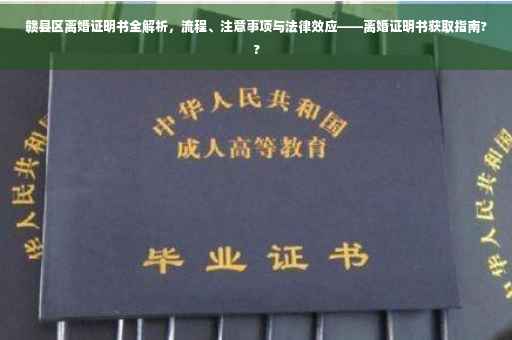 对于赣红区的居民而言,离婚证明书在解除婚姻关系后具有至关重要的法律地位,本文将详细介绍赣红区离婚证明书的获取流程、注意事项以及法律效应,帮助读者更好地理解和处理离婚事宜。
