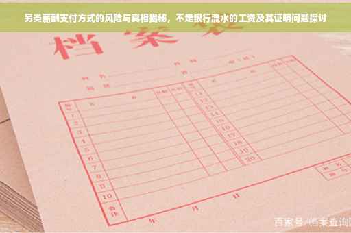 随着科技的进步和互联网的普及,传统的银行流水支付工资的方式逐渐受到挑战,越来越多的企业和个人开始尝试不走银行流水的工资支付方式,究竟什么是工资不走银行流水?它背后隐藏着怎样的风险与真相?本文将对此进行深入探讨。