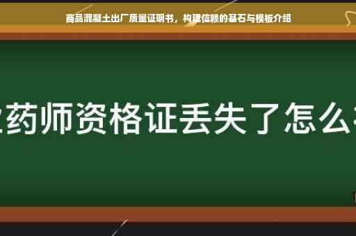 本文详细介绍了商品混凝土出厂质量证明书的重要性、编制依据、编制内容以及案例分析,为保障建筑工程质量、维护生产厂家信誉和保障消费者利益,我们建议生产厂家应严格按照相关标准和规范编制质量证明书,加强与施工单位的合作与沟通,共同推动建筑行业的健康发展,加强对消费者的宣传教育,提高消费者的质量意识,共同维护建筑行业的健康发展。