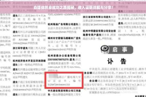 随着互联网的普及和社交媒体的兴起,越来越多的人选择投身于自媒体行业,自媒体作为一种新兴的媒体形式,以其独特的魅力吸引着广大用户的眼球,作为一名自媒体作者,我深知自媒体行业的竞争压力与日俱增,但正是通过不断努力和创新,我成功在自媒体领域取得了不错的成绩,本文将分享我的自媒体创业经历及收入证明,希望对有志于从事自媒体行业的朋友有所启发和帮助。