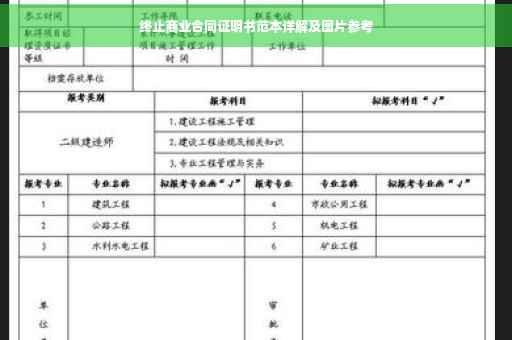 摘要:本文介绍了终止商业合同证明书范本的详细解析,包括其格式、内容和注意事项等。附带了终止商业合同证明书范本的图片,以便读者更好地了解实际应用。本文旨在帮助读者了解终止商业合同证明书的相关知识和应用,以确保在商业合同终止时能够妥善处理相关事宜。