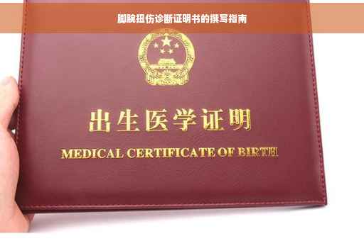 摘要:本诊断证明书旨在记录患者脚腕扭伤的情况。内容包括患者基本信息、受伤时间、地点、症状表现、诊断结果和治疗建议等。书写时应遵循医学文书规范,清晰明了地表述患者的病史、体征及诊断依据,以便医生做出准确的诊断和处理。患者应及时就医,按照医生的建议进行休息、治疗及康复训练,以促进脚腕的恢复。