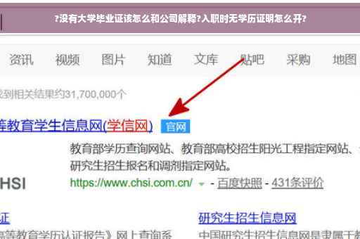 如果没有大学毕业证的话,应该实事求是的和公司解释具体的原因,到底是因为自己没有读大学,还是因为自己错失了读大学的机会,对公司的解释一定要做到诚信,千万不要去隐瞒一些事情,因为很多事情根本是隐瞒不了的,尤其是学历方面在学信网上一查便知。