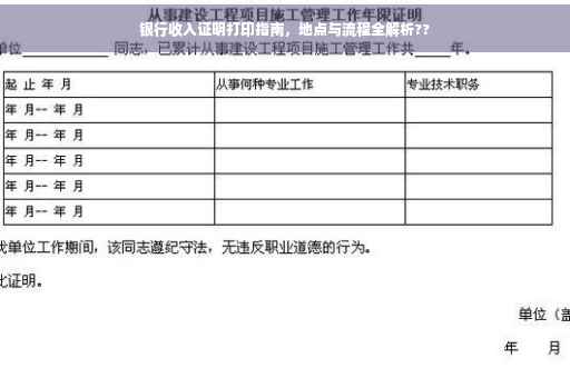 本文详细介绍了银行收入证明的打印地点及流程,包括银行柜台、自助查询机、网上银行等打印方式以及相应的操作流程,同时提醒大家打印收入证明时需要注意的事项,并解答了一些常见问题,希望本文能帮助大家顺利获取银行收入证明,满足各种需求,文章字数约数百字左右,具体字数视实际情况而定。