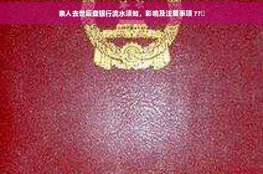 随着人们对财产、遗产等方面的关注度不断提高,亲人去世后如何妥善处理其财务问题成为了一项重要的议题,查询已故亲人的银行流水成为了一些家庭必须面对的问题,可能是为了了解亲人的财务状况,或是为了处理遗产事宜,本文将详细介绍在亲人死后查银行流水的过程中,你需要知道的事情,帮助你更好地应对这一敏感而重要的问题。
