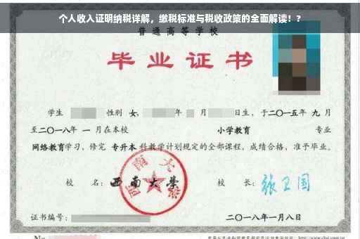 个人收入证明多少缴税?这取决于具体的税收政策和纳税标准。个人收入达到一定水平需要缴纳个人所得税。税收政策详解包括税率、税前扣除项目等。纳税标准则根据地区、职业、收入类型等因素有所不同。建议在了解自己的纳税标准后,合理规划个人财务,确保合法纳税。摘要字数控制在100-200字以内。
