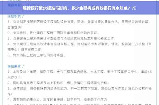 随着金融行业的快速发展,人们对个人信用和财务情况的要求越来越高,在银行办理贷款、信用卡等金融业务时,银行流水作为评估个人信用和还款能力的重要依据之一,其金额大小往往受到广泛关注,多少金额算银行流水?这个问题涉及哪些方面?本文将对此进行解读。