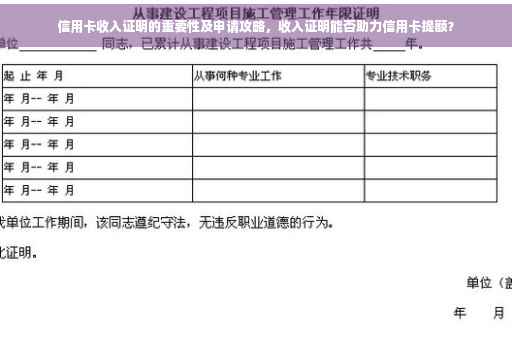 信用卡收入证明是银行评估申请人信用风险的重要依据,在申请信用卡时,申请人应提供真实有效的收入证明材料,以提高信用卡申请成功率,申请人还需了解信用卡申请流程、选择合适的信用卡以及保持良好的信用记录,希望通过本文的介绍,读者能更好地理解信用卡收入证明的重要性及申请攻略,为自己的金融生活带来更多便利。