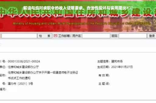 摘要:在求职过程中,有时会遇到要求提供收入证明的情况。收入证明要求合法且普遍存在于某些工作岗位。本文解读了收入证明的作用和必要性,指导如何应对这一要求,并提供实用建议。包括了解证明的具体内容、准备相关材料、注意保密个人薪资信息等。合理应对收入证明要求,有助于顺利求职。