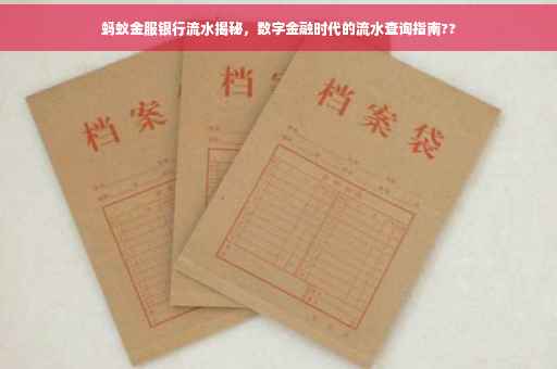 随着数字金融的飞速发展,越来越多的人开始关注金融科技的产物,蚂蚁金服作为其中的佼佼者,凭借其独特的业务模式和技术创新,吸引了众多用户的关注,本文将深入探讨蚂蚁金服银行流水背后的故事,揭示数字金融时代下的流水传奇。