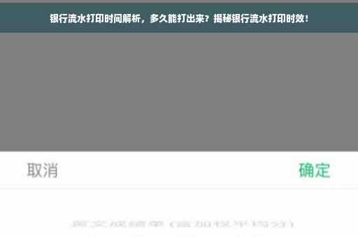 在现代金融领域,银行业务与我们日常生活息息相关,银行流水作为个人或企业信用评估的重要依据之一,广泛应用于各种场景,如贷款申请、信用卡办理等,关于银行流水打印时间的问题,很多人可能并不清楚,本文将详细解析银行流水打印时间,帮助大家了解多久能打出来,以便在需要时能够及时获取。