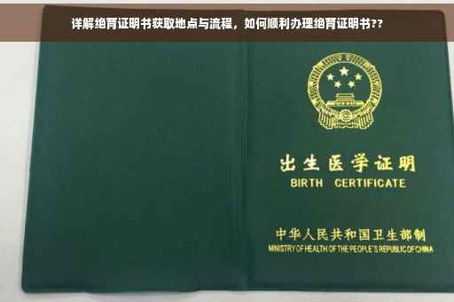 摘要:想要获取绝育证明书,需前往当地卫生行政部门或医疗机构开具。流程包括咨询了解相关要求、准备相关证件如身份证、结婚证等、前往指定医院或诊所进行绝育手术并保留相关证明文件,最后提交材料至卫生行政部门审核并领取绝育证明书。整个流程需严格遵守当地相关规定,确保手续齐全、合法合规。